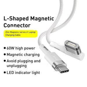 كيبل شاحن 60 واط لأجهزة apple MacBook من Baseus مقاس 2 متر – ابيض قماشي